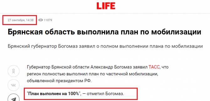 В Брянской области завершили частичную мобилизацию. Задачи, поставленные министерством обороны РФ, выполнены в полном объеме.