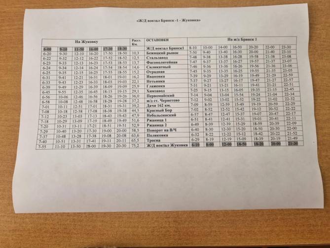 Маршрут движения и время их отправления максимально приближены к временно выведенным из расписания поездам. Автобусы будут отправляться из Брянска в 6:00, 9:10, 11:50, 16:00, 17:30 и в 18:30, из Жуковки - в 6:10, 8:00,12:00, 14:50,18:20, 20:00 и в 21:30. Ознакомиться с расписанием можно на остановках и в билетных кассах вокзалов.