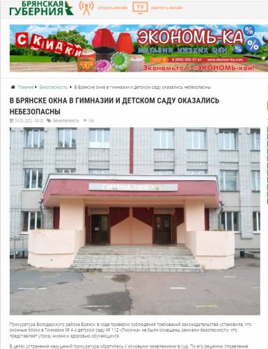 Брянская прокуратура устроила проверку в гимназии №7 и детском саду №112 «Лисичка». Выяснилось, что в зданиях нет замков безопасности на окнах.