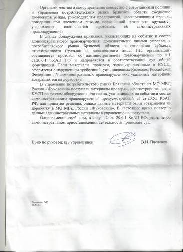 Но согласно ответа Пчеленка нач отдела потребительского рынка штрафы НЕ ВЗЫСКАНЫ ,а отправлены в МО МВД Жуковский для доработки откуда не вернулись!!